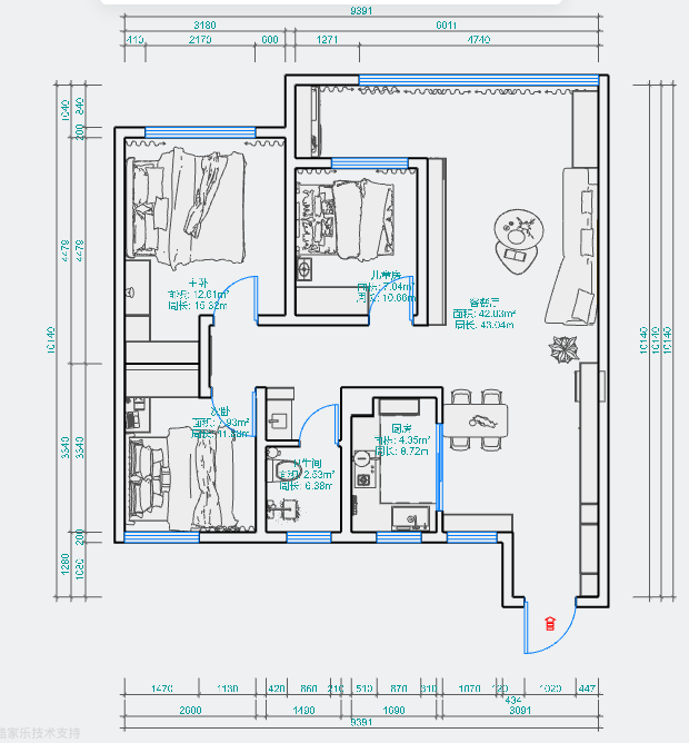 空间: 客厅 卧室 餐厅 厨房 阳台 卫生间 玄关